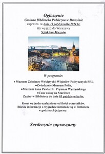 Serdecznie zapraszamy na wyjazd do Warszawy. Szczegóły w załączniku.