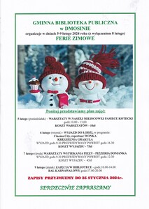 Soboty robocze: 10,17 i 24 luty 2024 roku. Biblioteka czynna w godzinach 8.00-12.00.