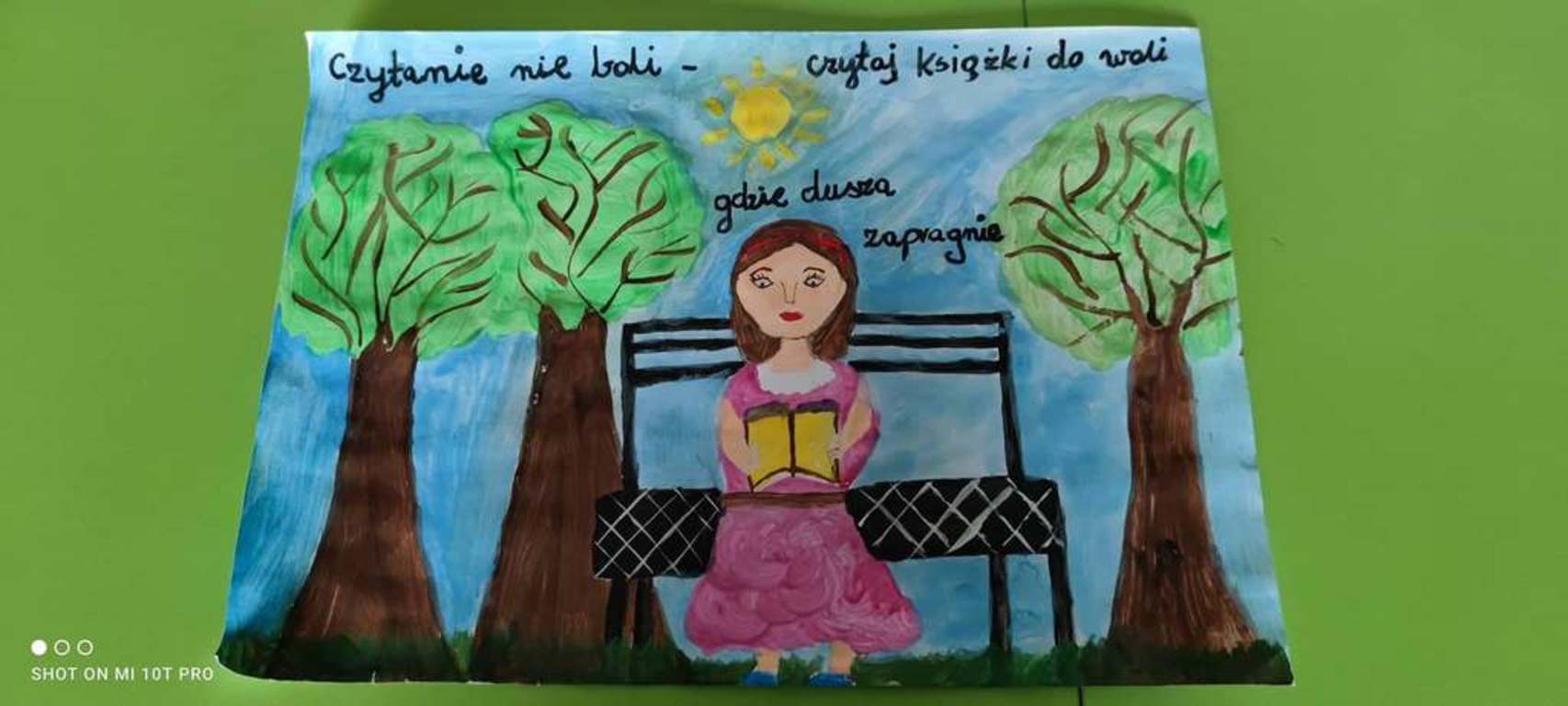 Drugi konkurs polegał na namalowaniu ilustracji do hasła projektu czyli "Czytanie nie boli - czytaj książki do woli!!!".