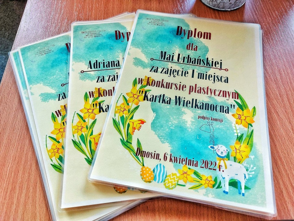 W dniu 12 kwietnia br. w Gminnej Bibliotece Publicznej w Dmosinie miało miejsce podsumowanie i wręczenie podziękowań w konkursie plastycznym"Kartka wielkanocna.Serdecznie gratulujemy i dziękujemy za udział w konkursie.