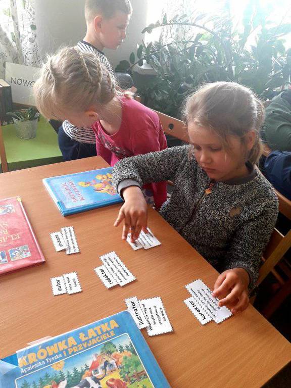 Zapoznaliśmy się z księgozbiorem biblioteki i pracą bibliotekarza, wiemy, jak należy zachowywać się w bibliotece i jak obchodzić się z książkami.