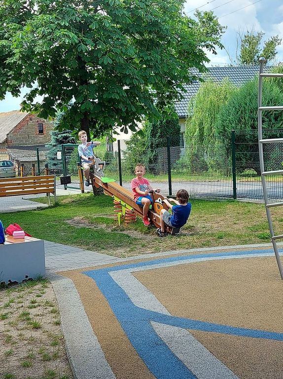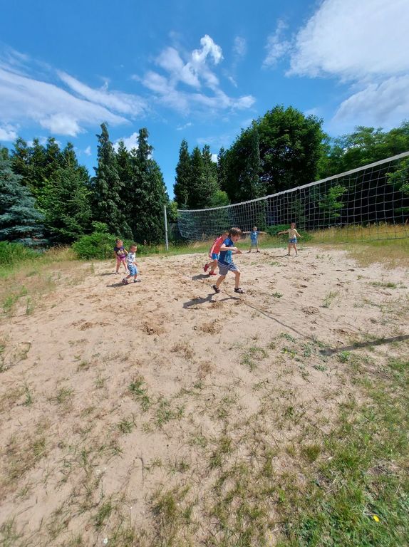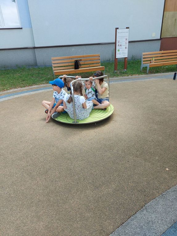 Dzieci chętnie proponowały swoje ulubione zabawy. Bawiliśmy się w kolory, ciuciubabkę, baba Jaga patrzy, gąski do domu i wiele innych. Byliśmy również kilkukrotnie na placu zabaw i zewnętrznej siłowni by zadbać o naszą kondycję.