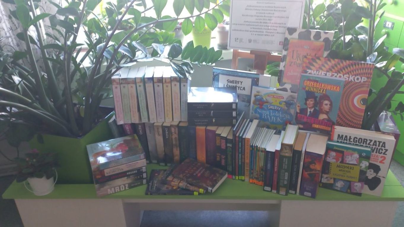 Zakupiono również nowości wydawnicze, które zostały sfinansowane z dotacji otrzymanej od Gminy Dmosin.