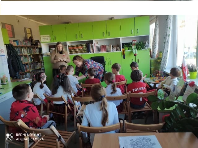 Podczas spotkania dzieci nauczyły się wiersza „Kto ty jesteś Polak mały” autorstwa Władysława Bełzy, po czym chętnie recytowały wiersz z podziałem na dziewczynki i chłopców.