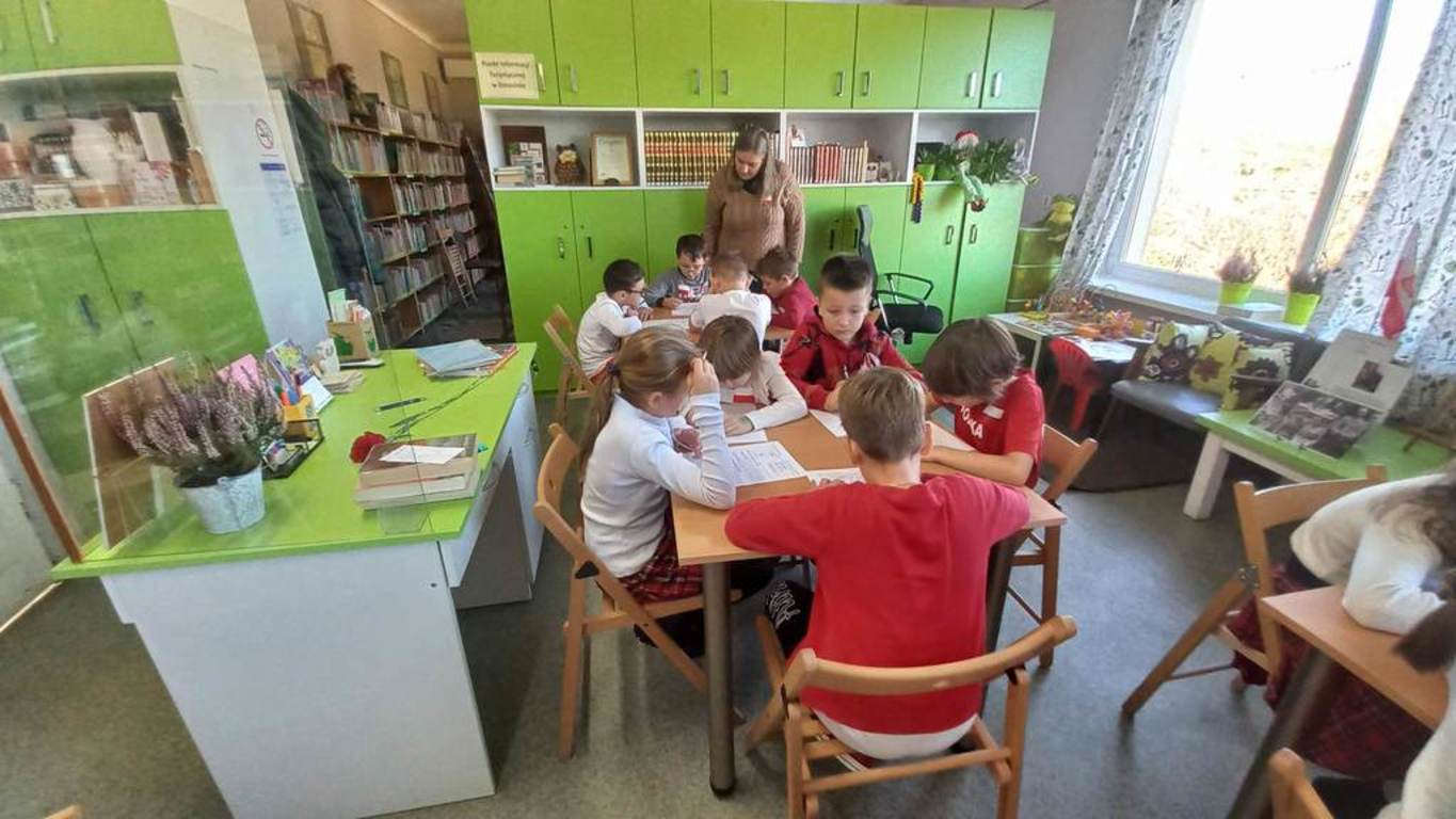 Dnia 08 listopada br. Gminna Biblioteka Publiczna w Dmosinie zaprosiła klasę IIa ze Szkoły Podstawowej im. Jana Brzechwy w Dmosinie wraz z wychowawczynią panią Ewą Sadzak na lekcję biblioteczną.