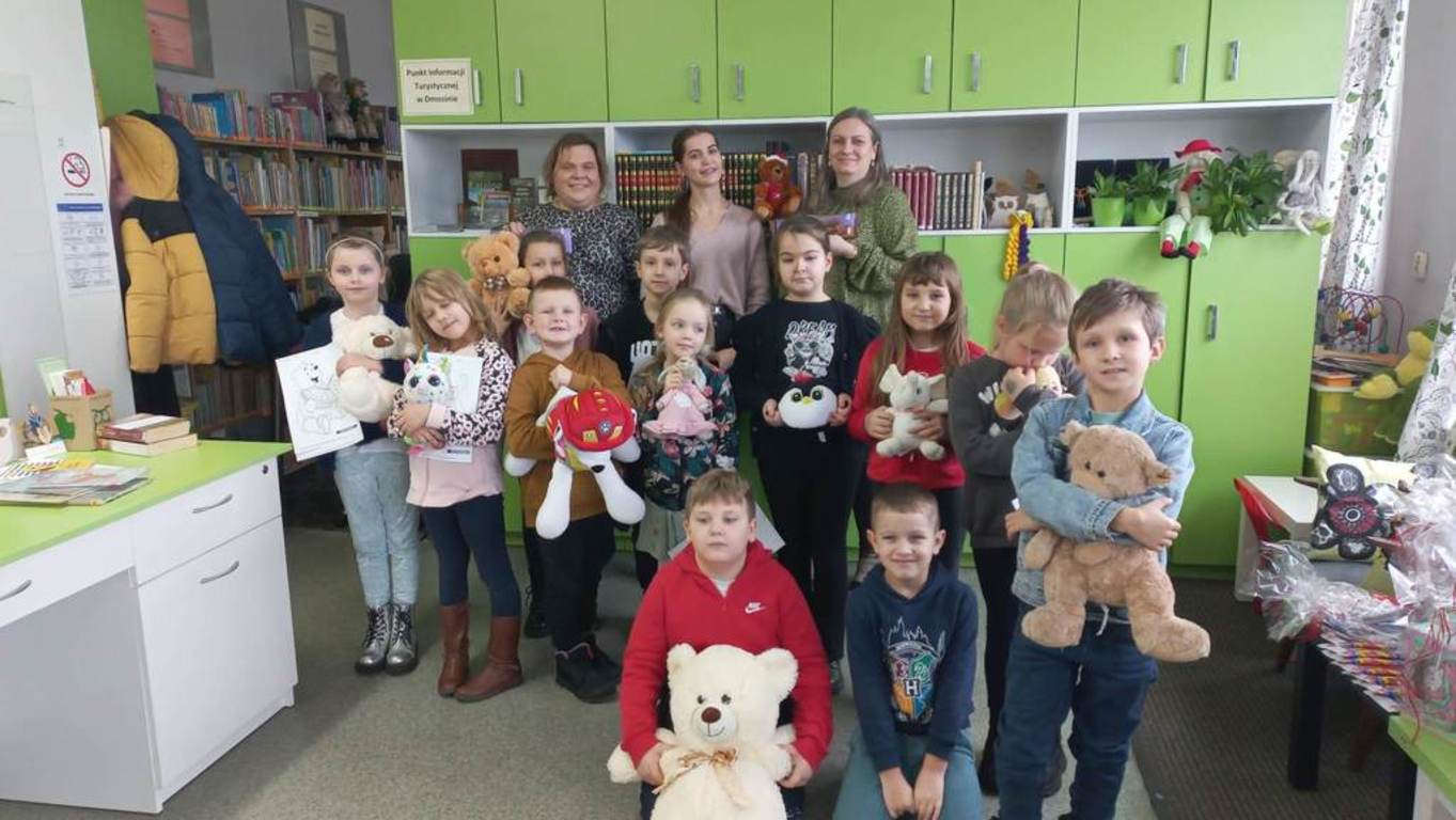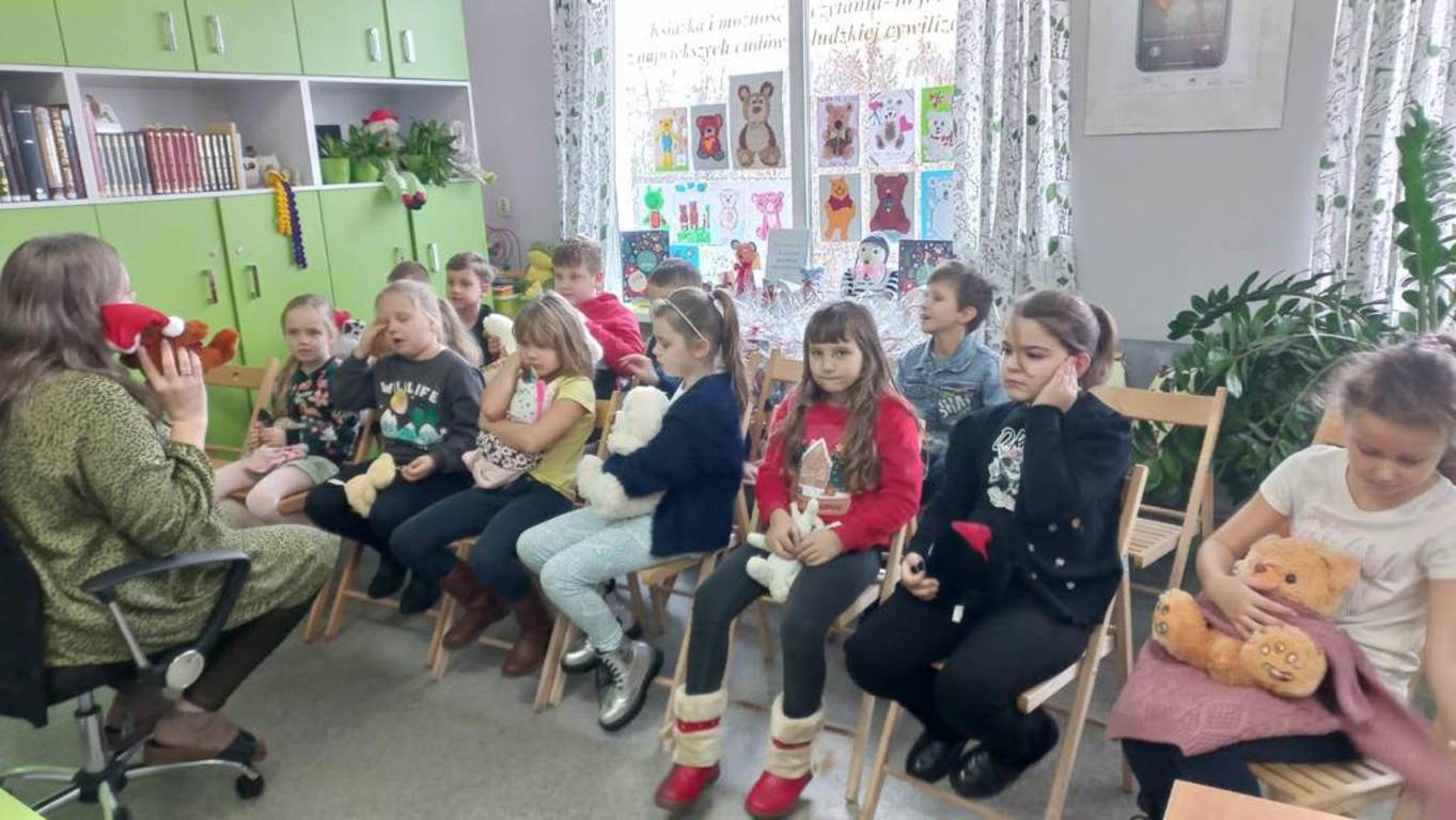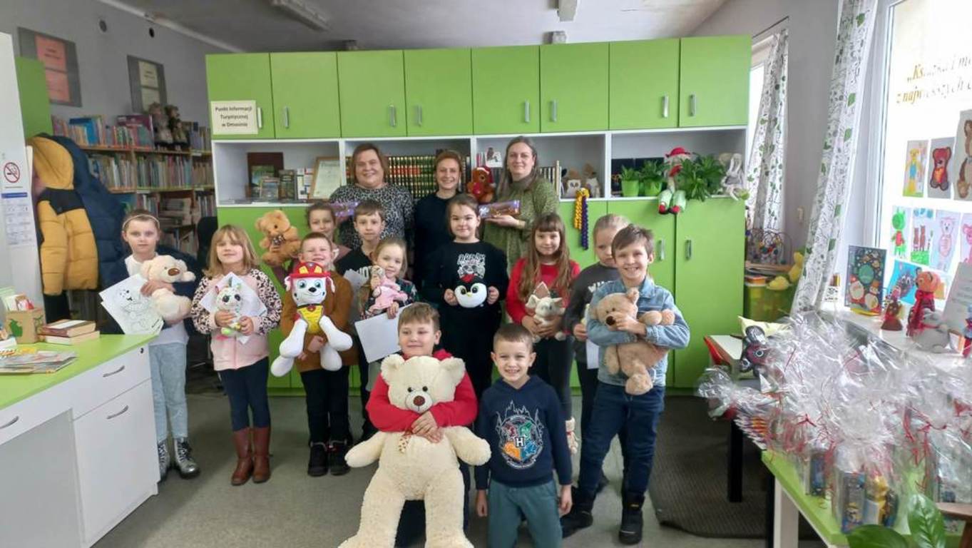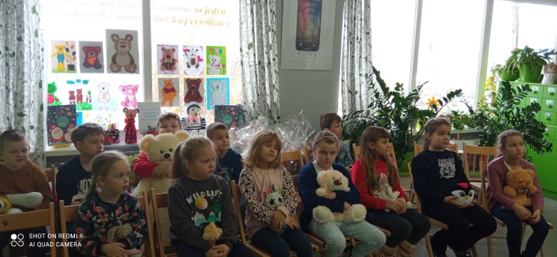 Od 25 listopada 2002r. dokładnie w setną rocznicę powstania maskotki obchodzimy Światowy Dzień Pluszowego Misia, dlatego w tym roku GMINNA BIBLIOTEKA PUBLICZNA w Dmosinie zaprosiła uczniów klasy I wraz z wychowawczynią p.Anną Kubicką na wspólne świętowanie.