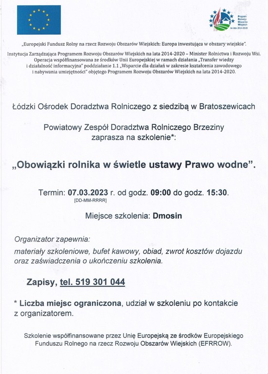 W imieniu Łódzkiego Ośrodka Doradztwa Rolniczego z siedzibą w Bratoszewicach oraz Powiatowego Zespołu Doradztwa Rolniczego w Brzezinach serdecznie zapraszamy.