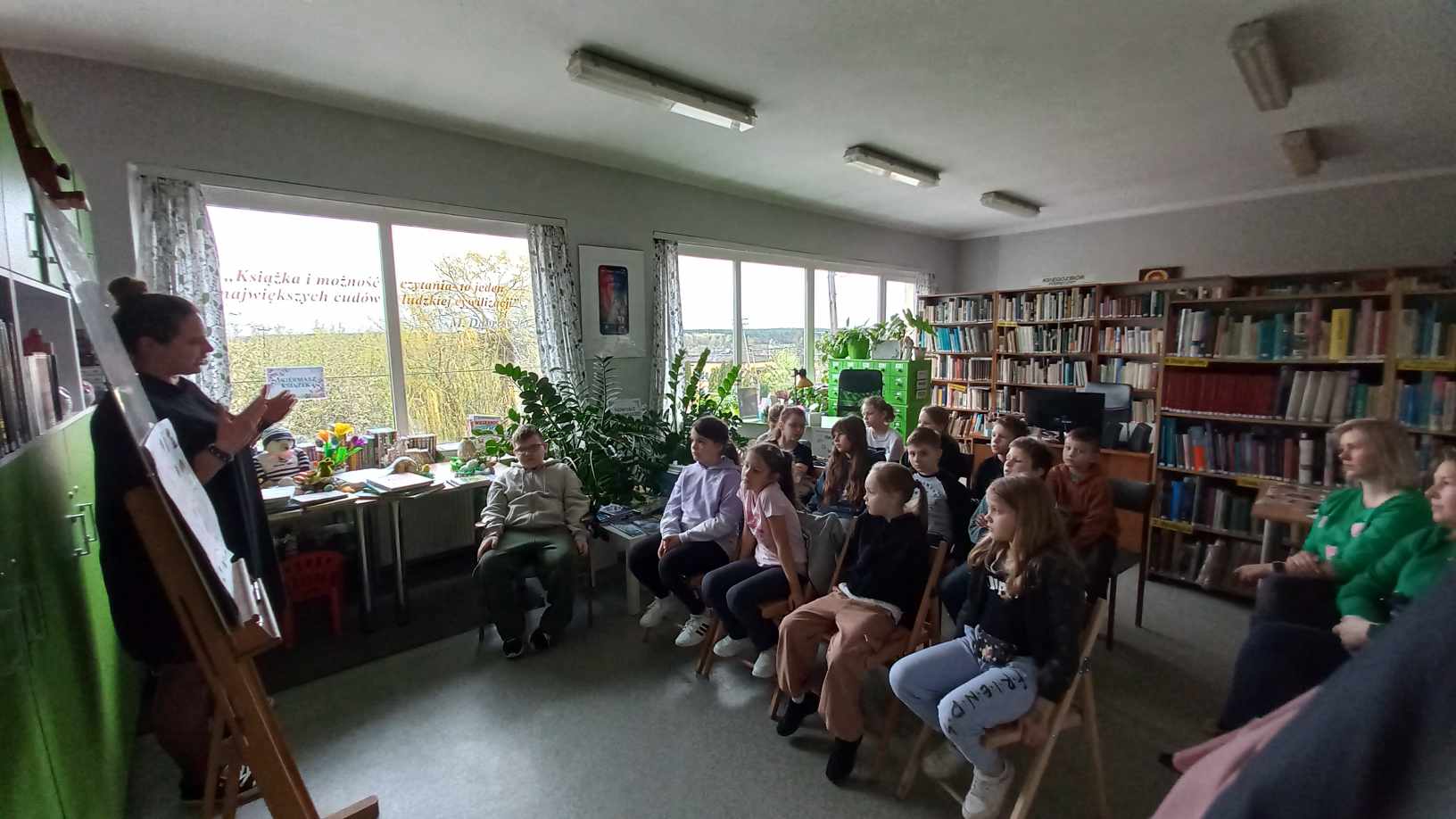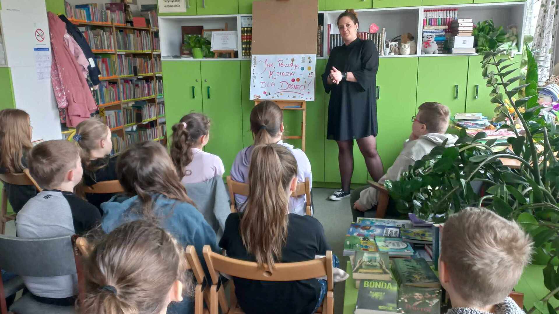 Z tej okazji w bibliotece miało miejsce spotkania z dziećmi z klasy II wraz z paniami: Małgorzatą Dałkowską i Ewą Radomską, które poprowadziła Pani Magdalena Kochanowska , która jest redaktorem i korektorem książek dla dzieci z dyplomem ukończenia Edytorstwa tekstów literackich na Uniwersytecie Łódzkim. Od wielu lat wspiera autorów (zwłaszcza początkujących), zaczytując się zawodowo w pozycjach dla najmłodszych (mkochanowska.pl).