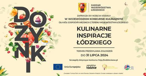 Podczas tegorocznych Dożynek odbędzie się konkurs kulinarny dla Kół Gospodyń Wiejskich z terenu województwa łódzkiego pn. „Kulinarne inspiracje Łódzkiego”. Wszystkie Koła Gospodyń Wiejskich, które chcą wypromować lokalne potrawy/wypieki powstałe w oparciu o tradycyjne receptury zachęcamy do wzięcia udziału w konkursie.