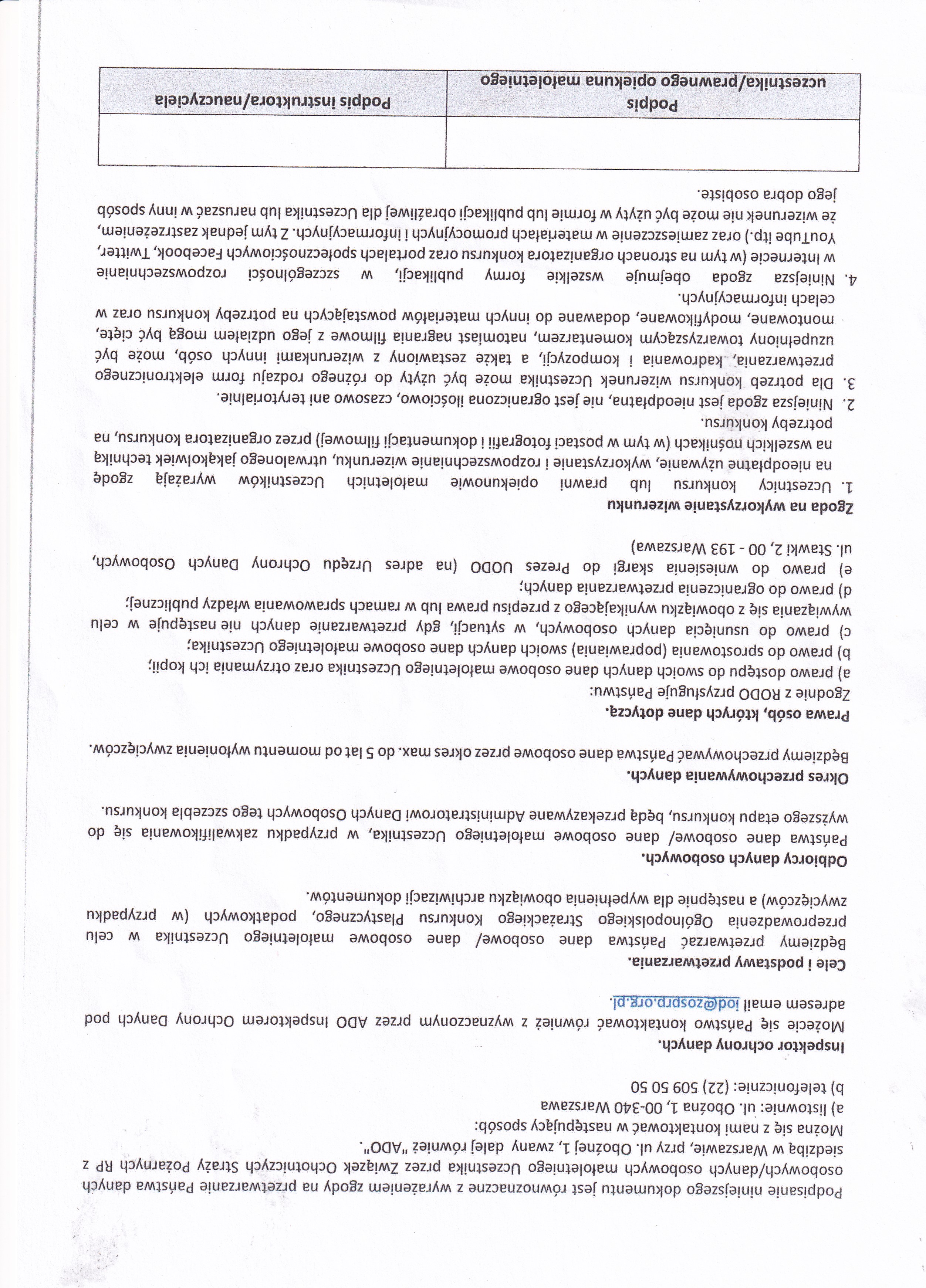 Organizator konkursu zastrzega sobie prawo pozostawienia prac i wykorzystania ich dla potrzeb wydawniczych i promocyjnych Związku Ochotniczych Straży Pożarnych Rzeczypospolitej Polskiej, o ile autor pracy nie zgłosi w tej sprawie zastrzeżeń w formie pisemnej.