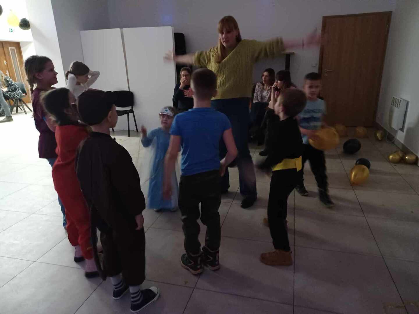 Wszystkie dzieci i te małe i te duże oraz rodzice bawili się w rytm znanych i lubianych przebojów. Wszyscy spędzili miło czas, a wspólna zabawa przyniosła dużo zadowolenia, radości i uśmiechu.