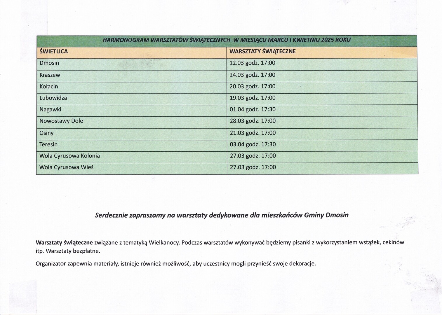 🐣🐣Poniżej przedstawiamy aktualizację harmonogramu warsztatów wielkanocnych.Prosimy o zapoznanie się z harmonogramem i zapraszamy serdecznie do udziału.🐣🐣