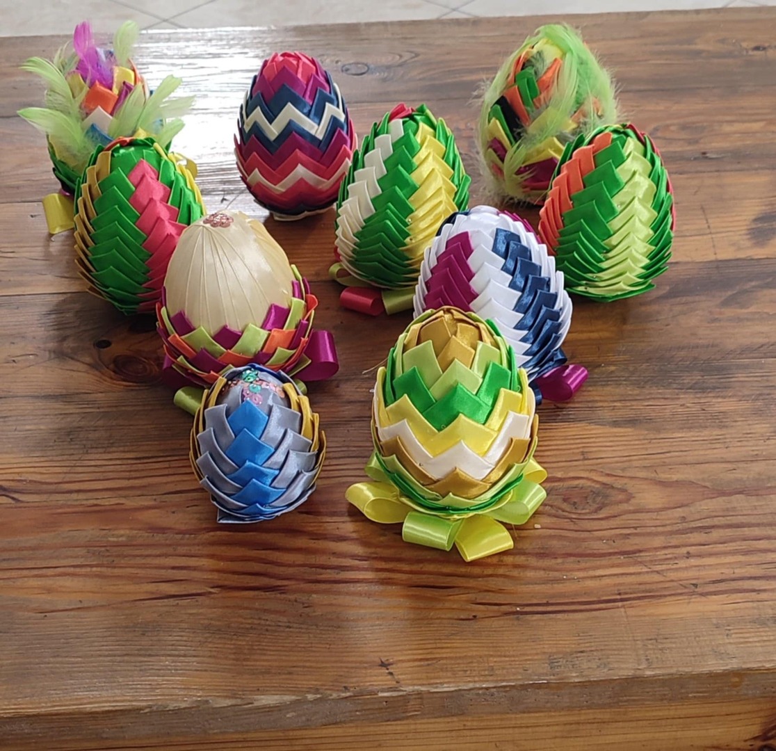 01.04.2025 go艣cili艣my w 艢wietlicy w Nagawkach. Uczestnicy wykona艂y pi臋kne kolorowe pisanki za pomoc膮 wst膮偶ki metod膮 karczochow膮.