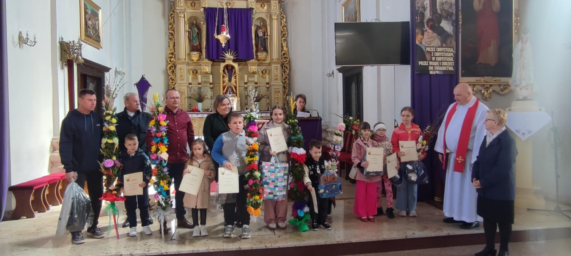 Dnia 13 kwietnia 2025 roku w Niedzielę Palmową w Kościele Parafialnym pod wezwaniem św. Andrzeja Apostoła i św. Małgorzaty Dziewicy i Męczennicy w Dmosinie odbyło się rozstrzygnięcie Konkursu „Palma Wielkanocna”.