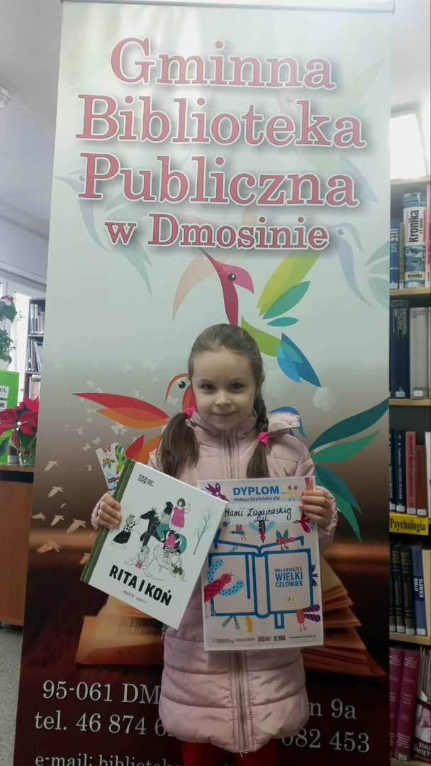 Marysia to kolejna ma艂a czytelniczka, która zebra艂a komplet naklejek za wizyty w bibliotece i zosta艂a nagrodzona dyplomem i upominkiem w ramach akcji Ma艂a ksi膮偶ka - wielki cz艂owiek. BRAWO! GRATULUJEMY!