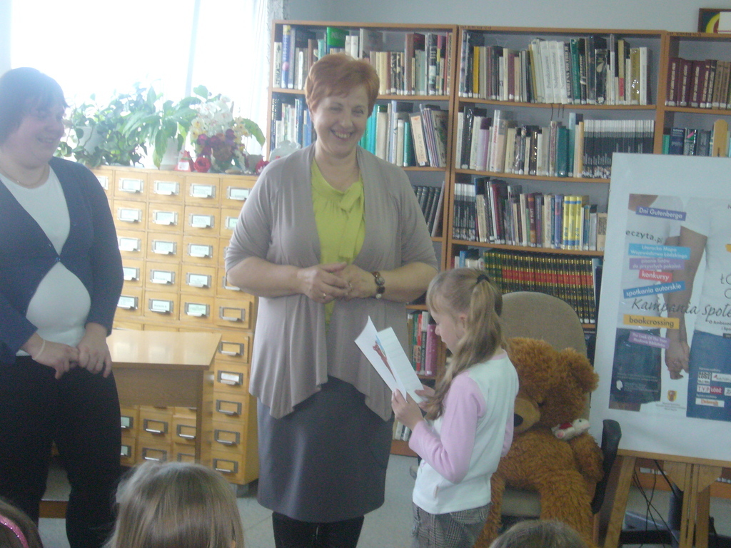 Spotkanie tego dnia było doskonałą okazją do ogłoszenia wyników konkursu literackiego pt: ”O czym śni Pluszowy Miś”, który został ogłoszony na początku listopada, a kierowany był do klas III i IV. Dzieci za zadanie miały napisać bajkę o śnie Pluszowego Misia