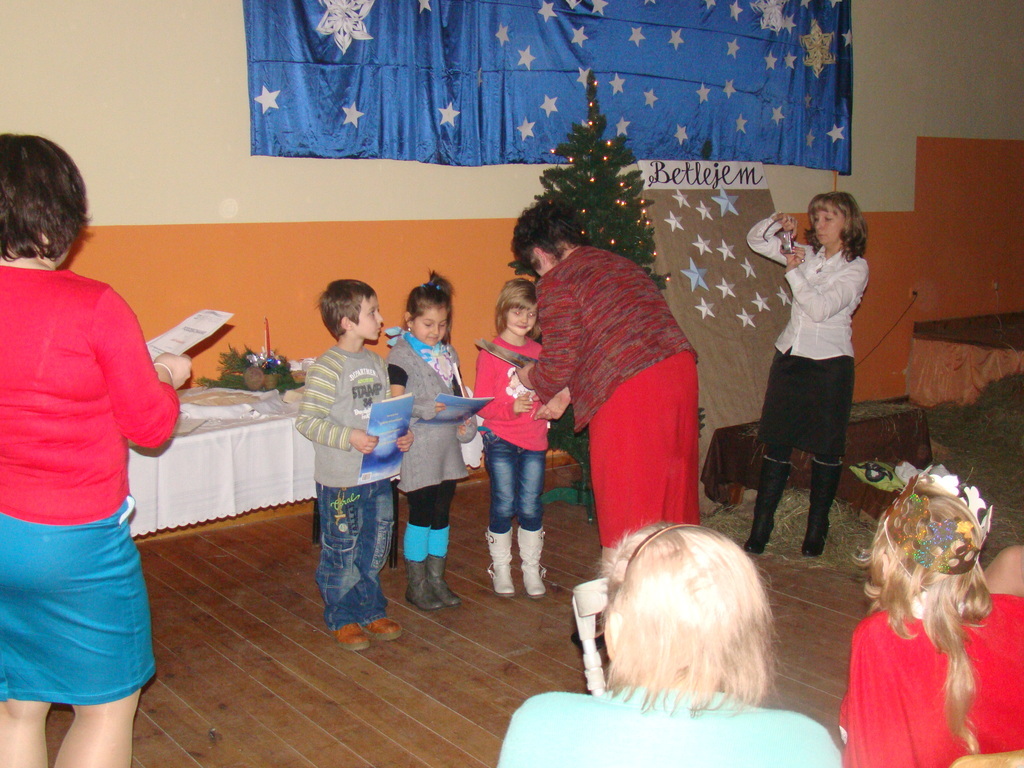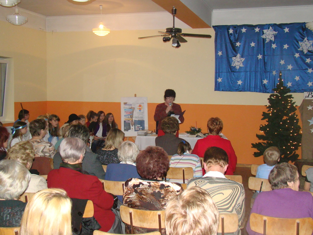 Kolejnym punktem spotkania była prezentacja „Polskie tradycje świąteczne” przygotowaną przez panią Małgorzatę Wielec gł. specjalistę ds. gospodarstw wiejskich i agroturystyki w Łódzkim Ośrodku Doradztwa Rolniczego w Bratoszewicach .Po prezentacji zostały wystawione jasełka przygotowane przez dzieci i młodzież z Koła Teatralnego „Teatrałki” działającego przy Bibliotece i Świetlicy w Dmosinie.