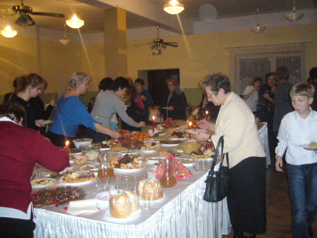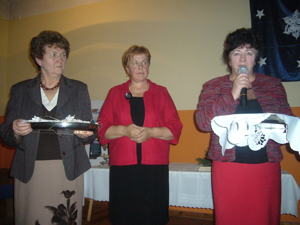 Otwarcia dokonała : kierownik dmosińskiej biblioteki - Pani Halina Grabowicz, oraz pani Anna Lis – pracownik Świetlicy w Dmosinie które wprowadziły wszystkich uczestników w nastrój świąteczny , towarzyszący wieczerzy wigilijnej. Pani Danuta Supera- wójt gminy Dmosin przedstawiła nam krótką historię KGW w Polsce, dziękując za budowanie i podtrzymywanie tradycji świątecznych w rodzinach