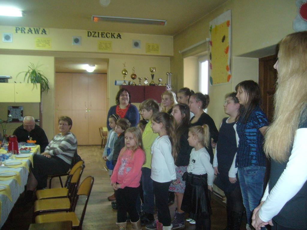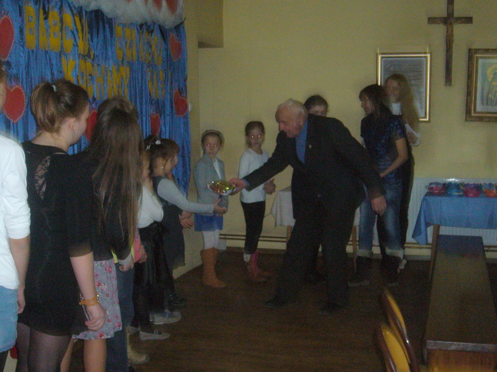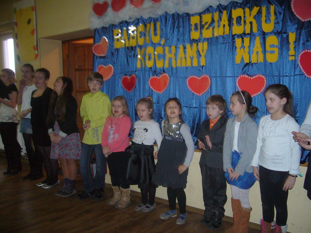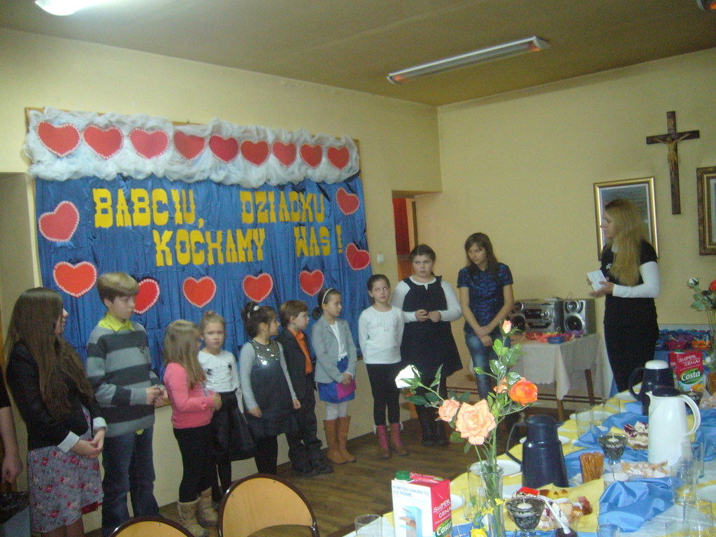 Słowa powitania skierowała do obecnych Pani Anna Lis ze Świetlicy w Dmosinie , po czym zaprosiła do wysłuchania montażu słowno muzycznego w wykonaniu dzieci z Kółka Teatralnego „Teatrałki” działającego przy Bibliotece i Świetlicy w Dmosinie Po występie, dzieci wręczyły słodkie prezenty babciom i dziadkom. Głos zabrali również najważniejsi goście tego spotkanie babcie, które przygotowały dla dzieci wiersze nawiązujące do życia i dzieciństwa babci i dziadka .Po występach zaproszono wszystkich na słodki poczęstunek. I tak w atmosferze wspomnień i rozmów przy stole upływał szybko czas.W spotkaniu uczestniczyło 30 osób.