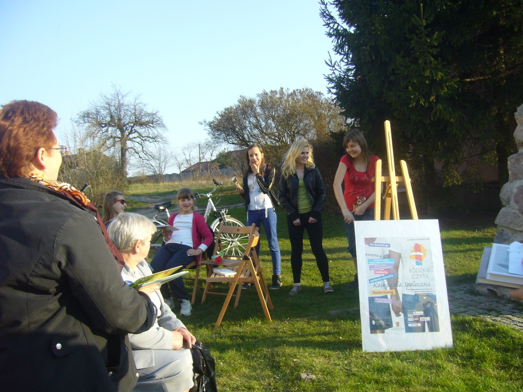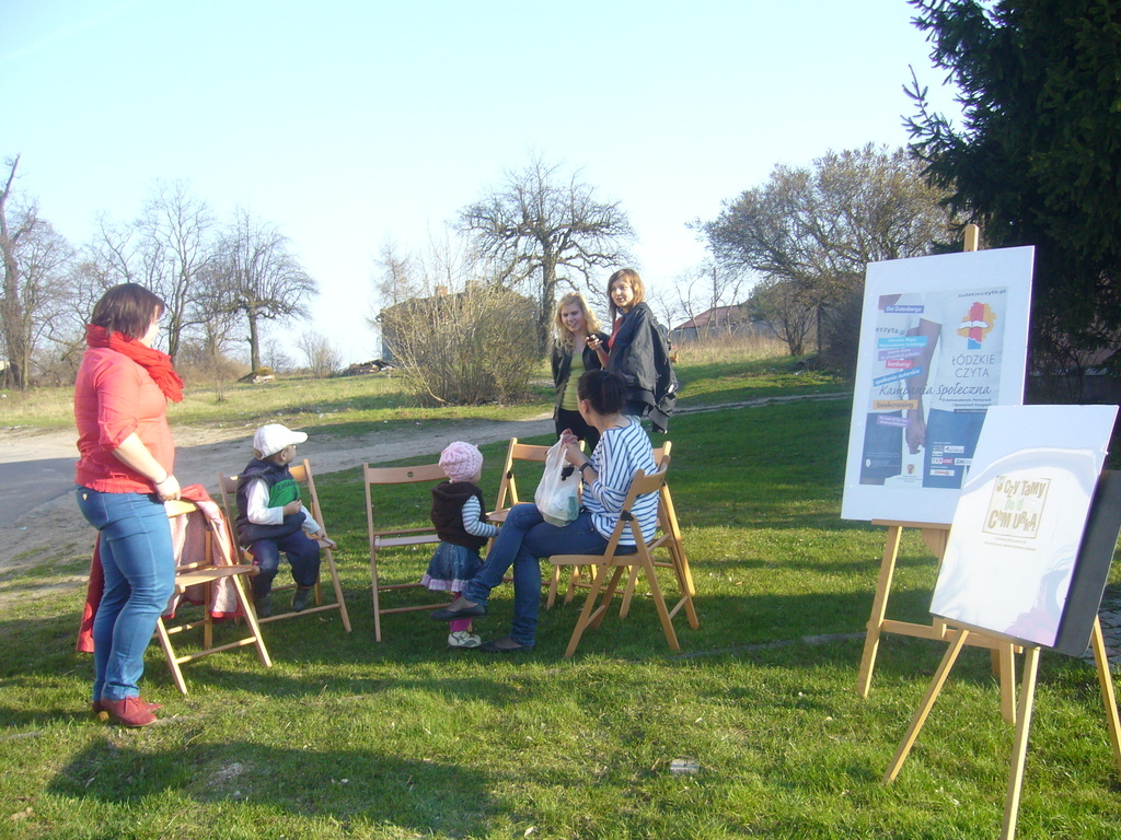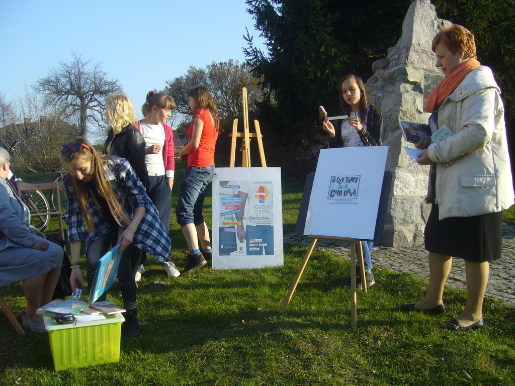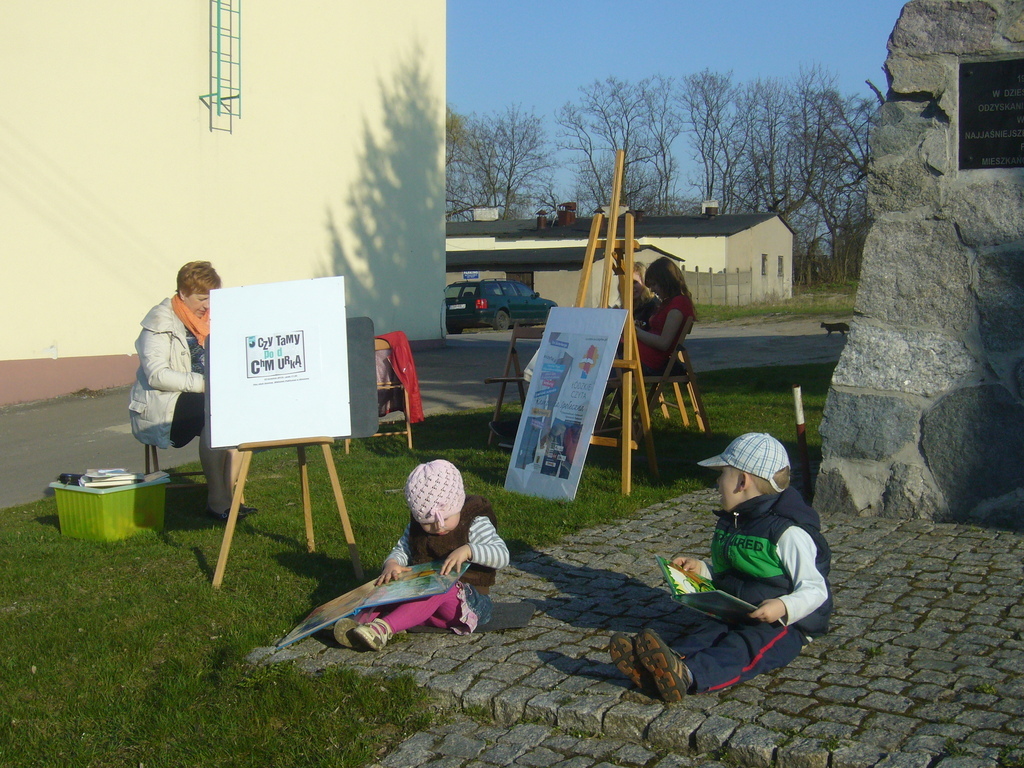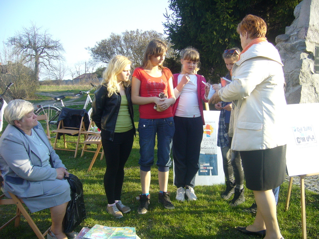 23 kwietnia tuż przed godziną 18:00 w określonych miejscach w centrach kilkunastu miast Polski spotkali się miłośnicyliteratury. W naszej Bibliotece akcja ta miała miejsce 22 kwietnia o godzinie 17.30 na „Skwerku przy pomniku” tuż obok Gminnej Biblioteki Publicznej w Dmosinie.