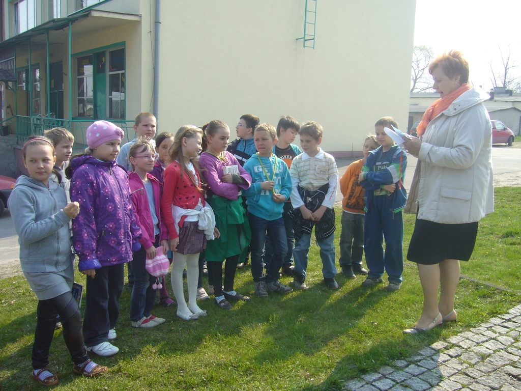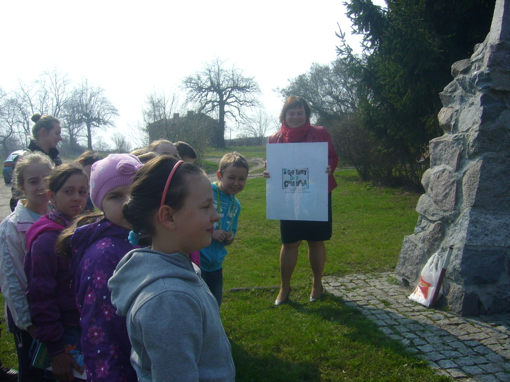 Tym razem wyszliśmy dzieciom naprzeciw na „Skwerku przy pomniku” obok Gminnej Biblioteki Publicznej w Dmosinie rozpoczęliśmy nasze spotkanie.
