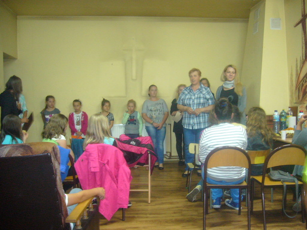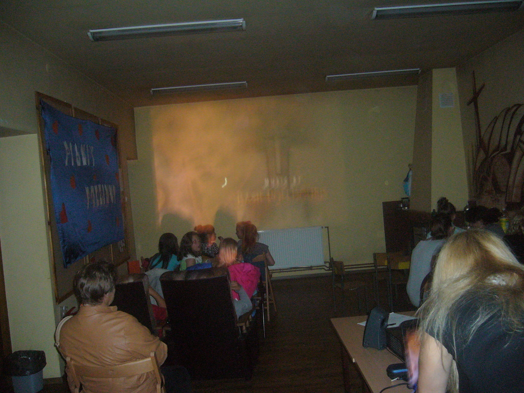 Po części oficjalnej przeszliśmy do budynku świetlicy, gdzie przywitaliśmy wszystkich i obejrzeliśmy występ Koła Teatralnego „Teatrałki”, które przygotowały przedstawienie, nawiązujące do twórczości Juliana Tuwima, gdyż w tym roku obchodzimy „Rok Tuwima”. Dzieci zadedykowały ten występ swoim rodzicom. Następnie po występie i życzeniach dla rodziców dzieci obejrzały film „Księga Dżungli” oraz zostały poczęstowane kiełbaskami. Na dzieci czekał również słodki poczęstunek. Do wieczora były gry i zabawy i dużo zabawy