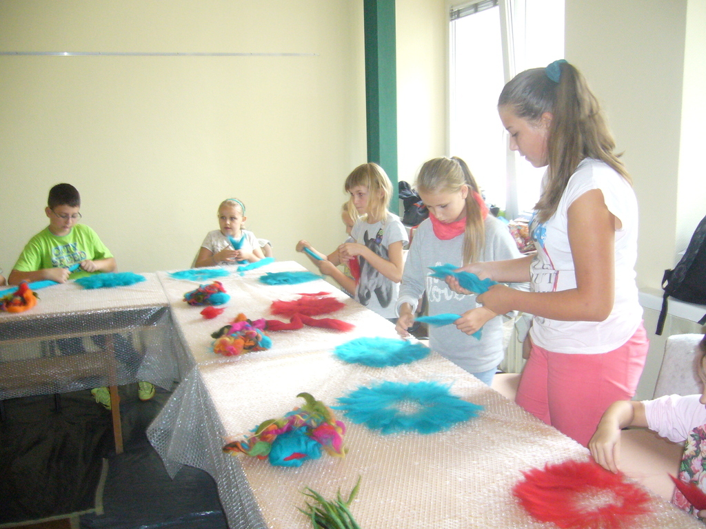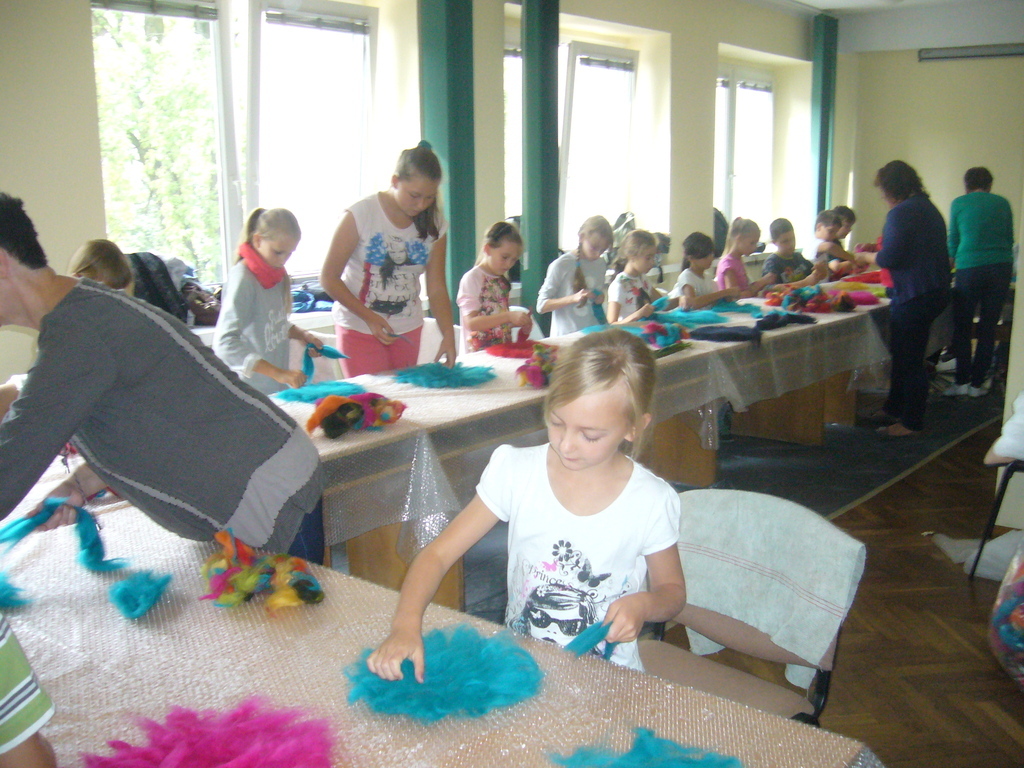 Kolejnym przystankiem projektu Kolorowa Lokomotywa były 2 warsztaty w Łódzkim Domu Kultury, które odbyły się 11 września br.: Pierwsze warsztaty dotyczyły filcowania na mokro. Uczestnicy wykonali unikatowe kompozycje kwiatowe , które jako dekoracyjne, które będą stanowiły elementy scenografii. Do warsztatów zostały wykorzystane odrzuty i resztki wełny czesankowej .Dzieci bardzo aktywnie uczestniczyły w w/w zajęciach