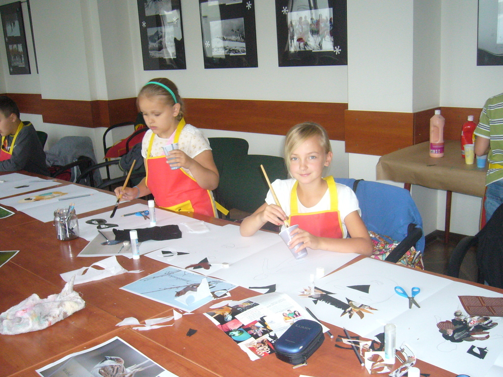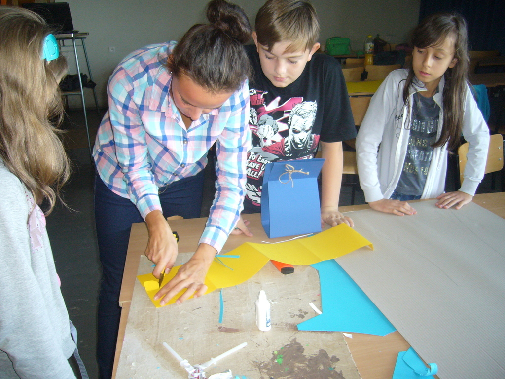 Uczestnicy warsztatów, świetnie radzili sobie z oporną materią jaką bywa papier. W rezultacie powstały gotowe do zaprezentowania publiczności papierowe ptaki z ponaklejanymi wycinankami i kolorowe pióra z bibułki. Swoje umiejętności młodzi artyści wykorzystają później do stworzenia scenografii spektaklu, który zwieńczy całość projektu.