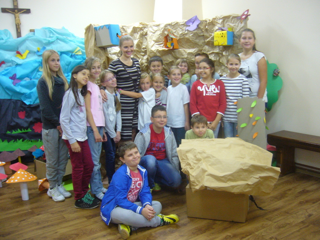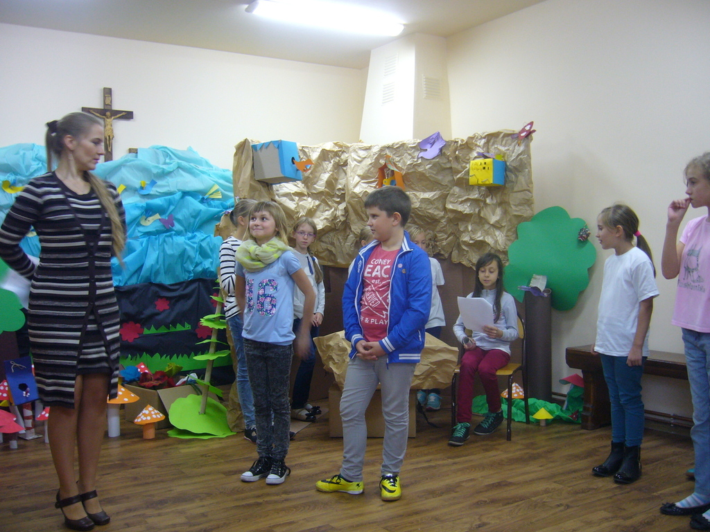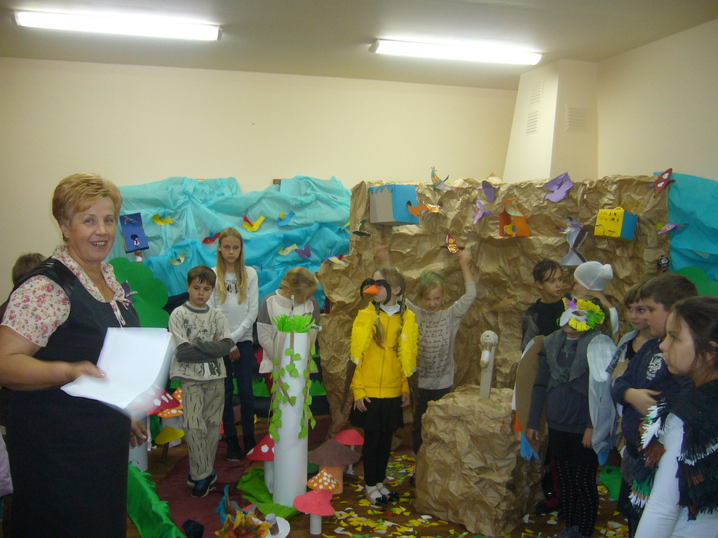 Ostatnim przystankiem projektu był warsztat teatralny,zirealizowany był w dniu 30 września br. w Dmosinie do wiersza „Ptasie radio”.