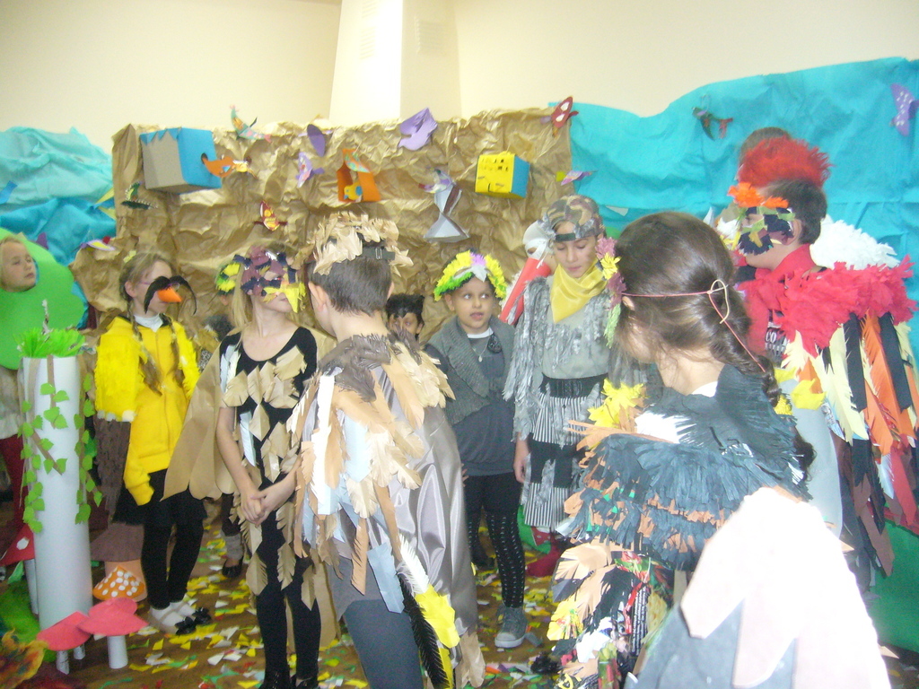 Dzieci, które wcieliły sie w rolę poszczególnych ptaków, mogły dowiedzieć się jak poprawnie zagrać swoja rolę. Dowiedziały się również jak ważną kwestią są ćwiczenia oddechowe, jak również poznały różne ćwiczenia dotyczące poprawnej wymowy, akcentu i dykcji.