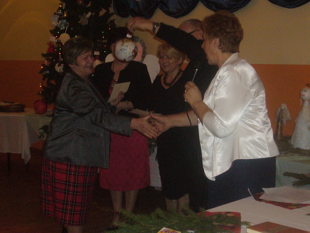 Następnie zostały ogłoszone wyniki dwóch konkursów: konkursu wiedzy pt: ”Co wiesz o Gminie Dmosin” oraz plastycznego pt: ”Bombka świąteczna”., których organizatorami byli :Gminna biblioteka Publiczna w Dmosinie oraz Wójt Gminy Dmosin.
