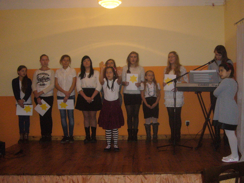 Po ogłoszeniu wyników miał miejsce występ poetycko- muzyczny dzieci i młodzieży z Koła Teatralnego „Teatrałki” działającego przy Świetlicy i Bibliotece. Po wysłuchaniu krótkiego programu proboszcz ks. Tadeusz Jaros odczytał fragment Pisma Św. po czym nie zabrakło życzeń, jak również przełamania się opłatkiem