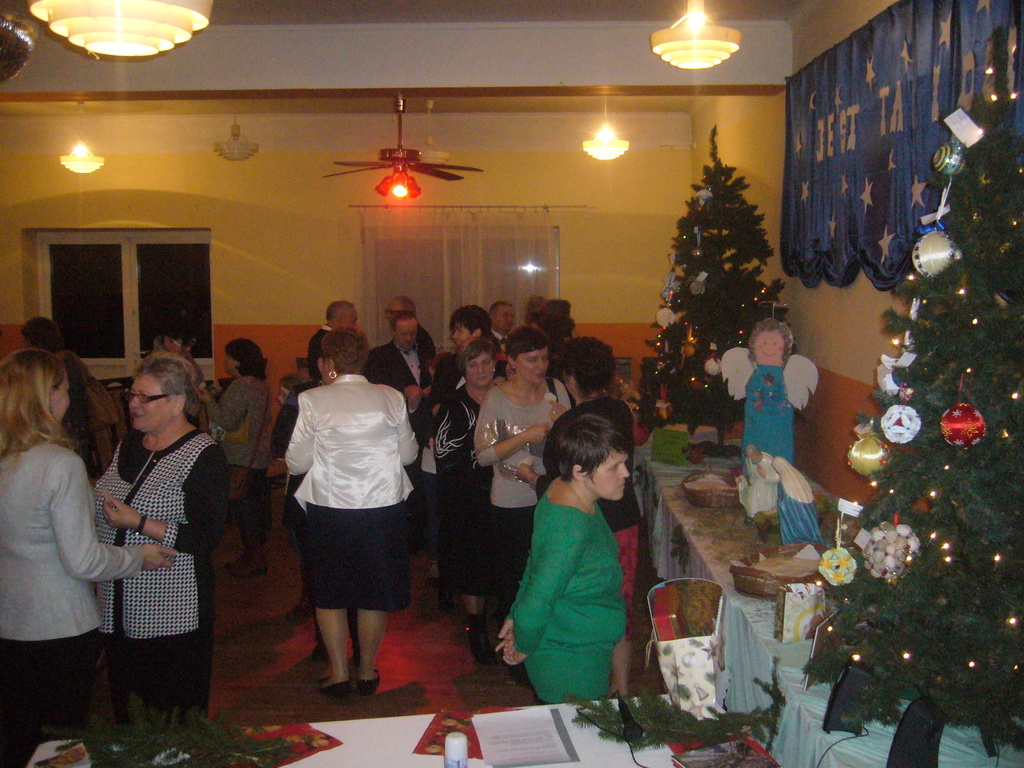 Otwarcia dokonała : Wójt Gminy Dmosin - Danuta Supera oraz Kierownik dmosińskiej biblioteki- Halina Grabowicz które wprowadziły wszystkich uczestników w nastrój świąteczny , towarzyszący wieczerzy wigilijnej jak i złożyły życzenia.