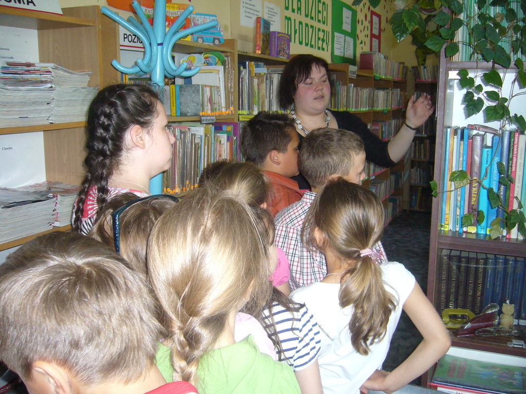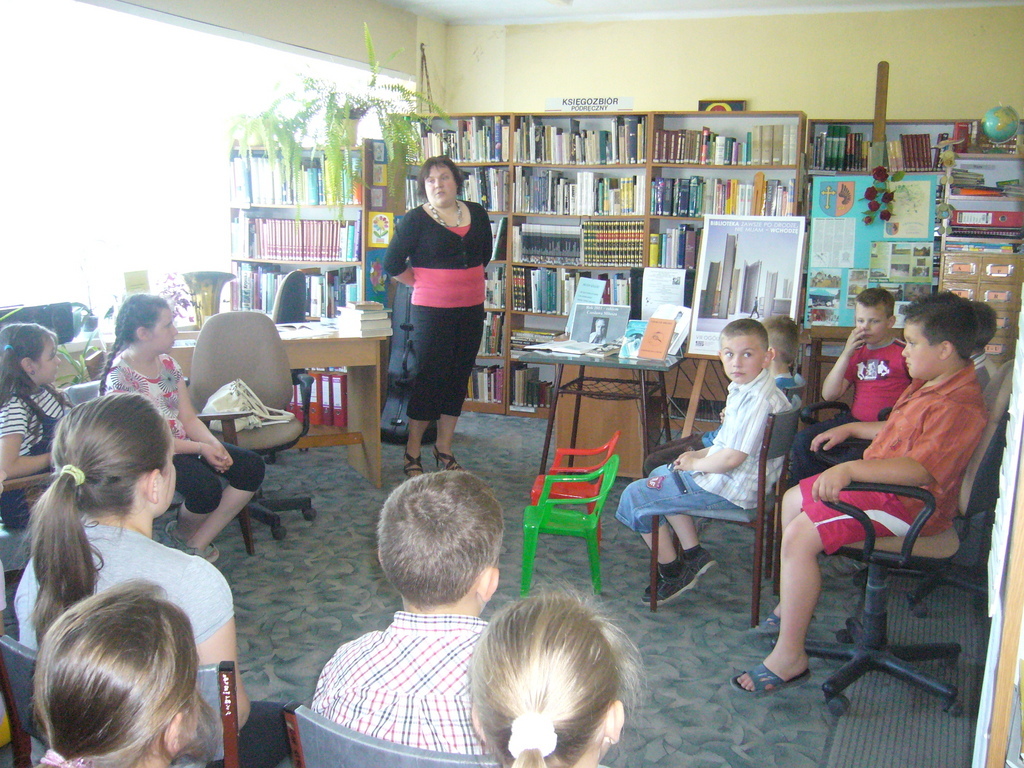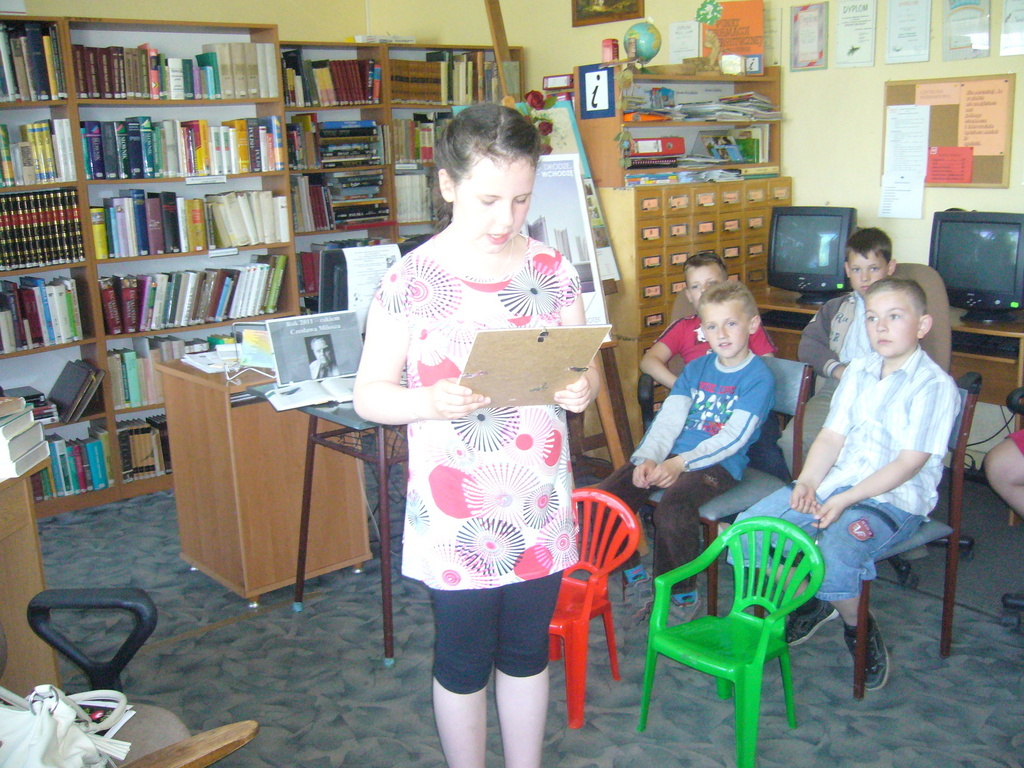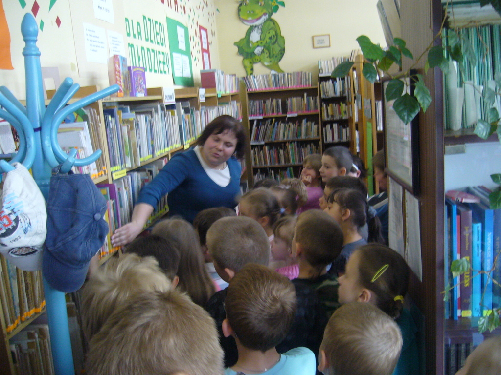 W dniu 20.05 br. o godz. 10.00 zawitała klasa IIA z panią wychowawczynią Ewą Sadzak, dzieci wysłuchały informacji na temat biblioteki, książek ,a następnie uczestniczyły w bajkowych zagadkach .W spotkaniu uczestniczyło 15 osób. Kolejne spotkanie miało miejsce tego samego dnia o godz. 1045, wtedy to bibliotekę odwiedziła klasa VI A z wychowawczynią panią Darią Okrasa, uczestniczyła w lekcji bibliotecznej „Życie i twórczość Czesława Miłosza" Dnia 26 maja br. bibliotekę odwiedziła klasa OA i Oddział Pięciolatków z wychowawczyniami panią Małgorzatą Kotecką i Anną Lis. Dzieci podczas spotkania opowiadały o swoich ulubionych bajkach, miał też miejsce konkurs ze znajomości bajek. Dowiedziały się o strukturze księgozbioru, poszanowaniu książek, oraz jakie gromadzimy książki i dla kogo. W spotkaniu uczestniczyło 35 osób