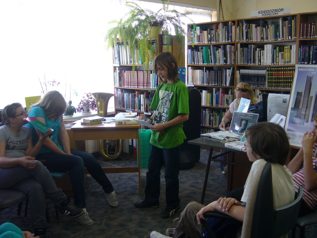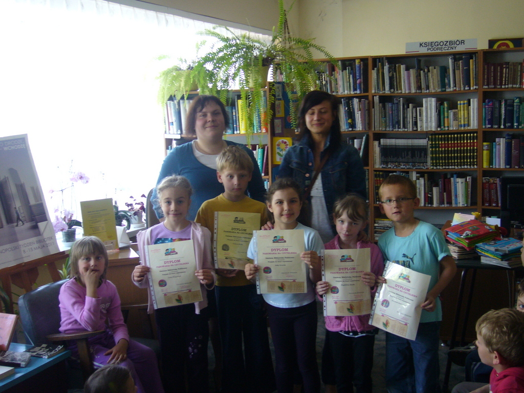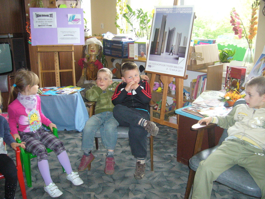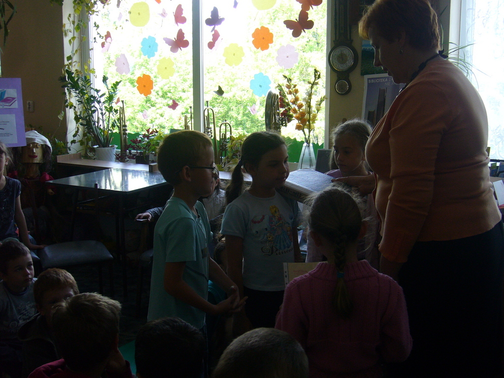 W dniu 20.05 br. o godz. 10.00 zawitała klasa IIA z panią wychowawczynią Ewą Sadzak, dzieci wysłuchały informacji na temat biblioteki, książek ,a następnie uczestniczyły w bajkowych zagadkach .W spotkaniu uczestniczyło 15 osób. Kolejne spotkanie miało miejsce tego samego dnia o godz. 1045, wtedy to bibliotekę odwiedziła klasa VI A z wychowawczynią panią Darią Okrasa, uczestniczyła w lekcji bibliotecznej „Życie i twórczość Czesława Miłosza" Dnia 26 maja br. bibliotekę odwiedziła klasa OA i Oddział Pięciolatków z wychowawczyniami panią Małgorzatą Kotecką i Anną Lis. Dzieci podczas spotkania opowiadały o swoich ulubionych bajkach, miał też miejsce konkurs ze znajomości bajek. Dowiedziały się o strukturze księgozbioru, poszanowaniu książek, oraz jakie gromadzimy książki i dla kogo. W spotkaniu uczestniczyło 35 osób