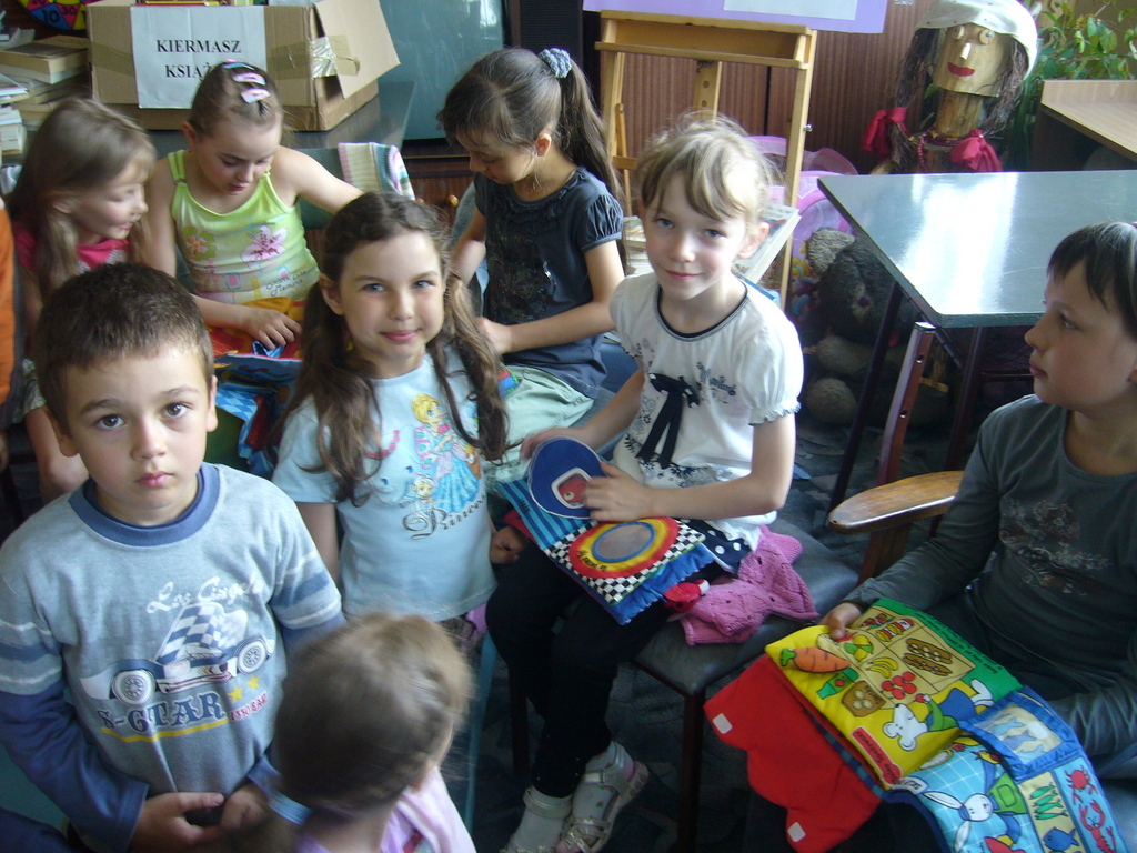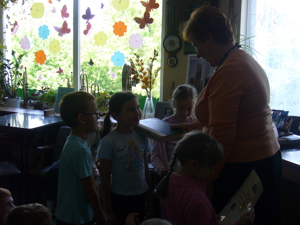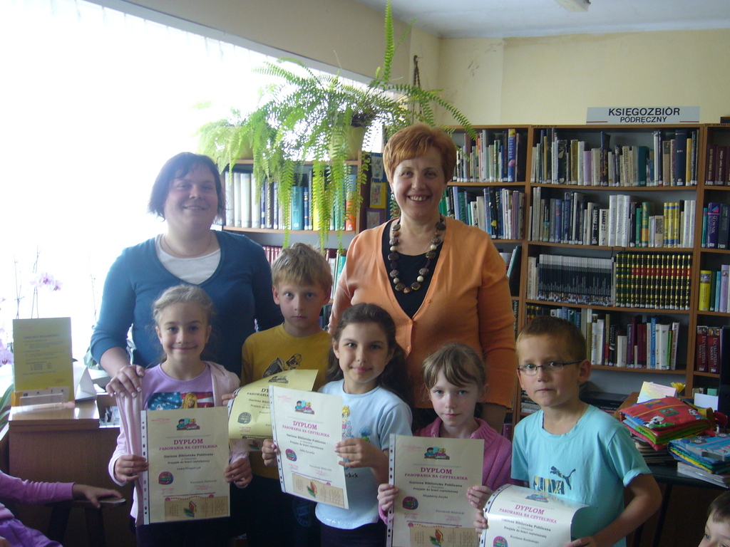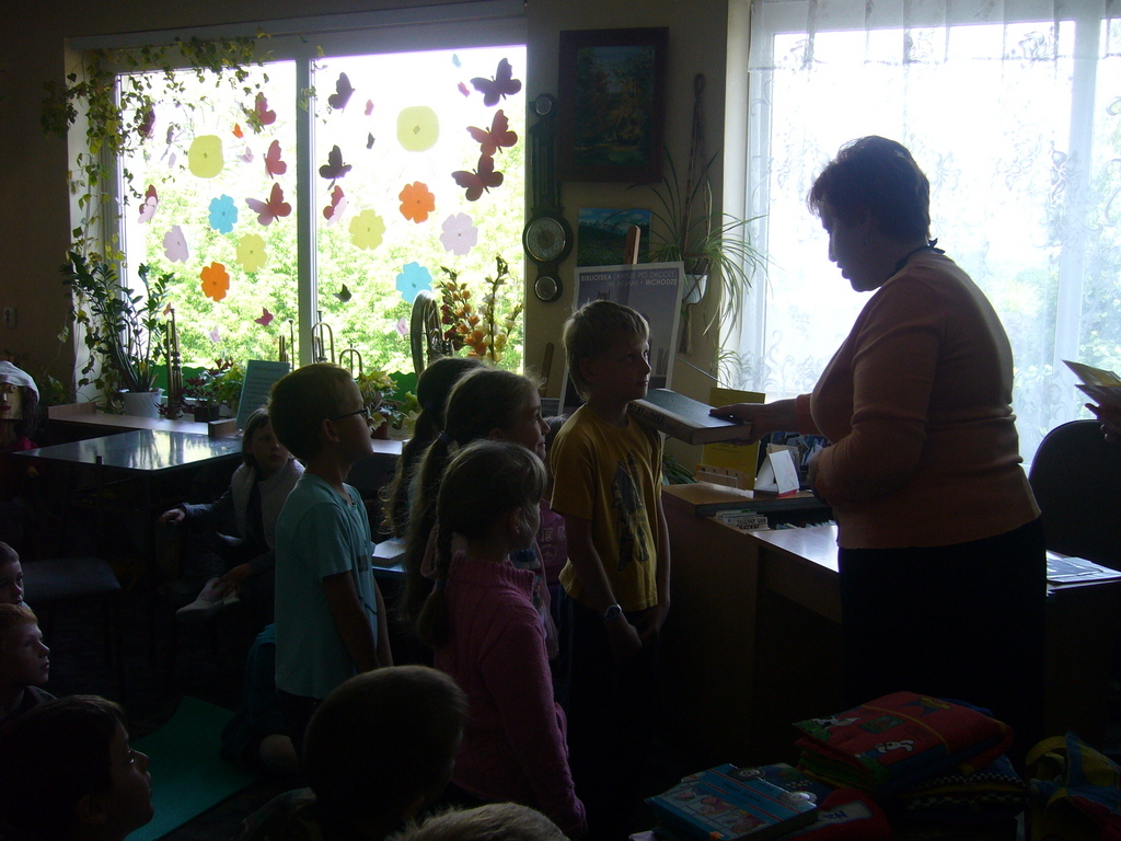 Dnia 27 maja br. o godz. 930 odwiedziła bibliotekę klasa I z panią wychowawczynią Anną Kubicką. Dzieci dowiedziały się jak funkcjonuje biblioteka, jakie posiada książki, zostały również zapoznane z "Prośbami Książki" w których książka prosi czytelnika o poszanowanie. Dzieci również opowiadały o swoich ulubionych książkach. Po czym obejrzały różne wydania książek np. w formie zabawek , w formie gry planszowej, jak również książkę z puzzlami. Na zakończenie spotkania dla najaktywniejszych czytelników odbyło się pasowanie na czytelnika. Młodzi czytelnicy otrzymali pamiątkowe dyplomy i zakładki, a pozostałe osoby otrzymały zakładki