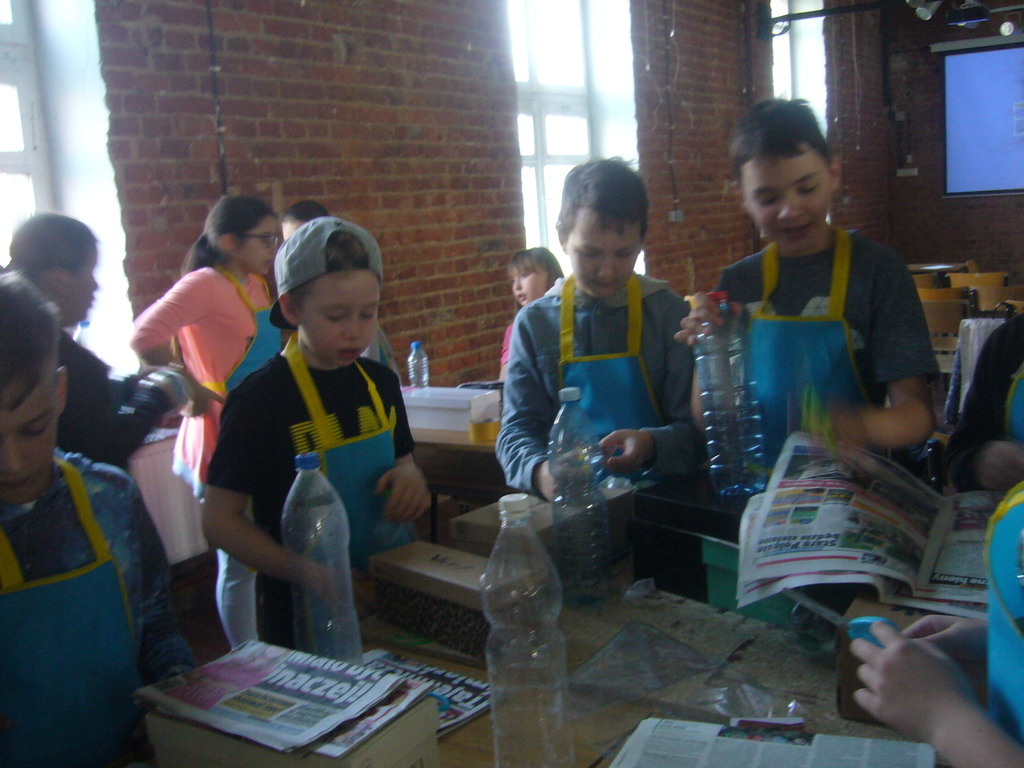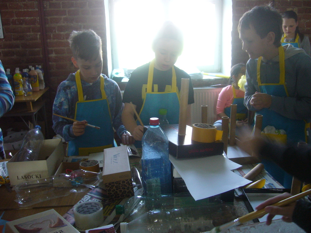 W ramach projektu w/w 05 kwietnia br. rozpoczęliśmy realizację projektu Łódzkiego Domu Kultury LOKOMOTYWĄ PO WIEDZĘ. Uczniowie klasy IVB Szkoły Podstawowej im. Jana Brzechwy w Dmosinie razem z opiekunami wybrały się na Politechnikę Łódzką na prelekcję oraz warsztat ze scenografii ekologicznej. Warsztaty miały na celu zapoznanie uczestników z rozwiązaniami pro- środowiskowymi szczególnie dotyczącymi przestrzeni publicznych. W trakcie zajęć zostały wykonane Elementy dekoracji nawiązujące do proekologicznych rozwiązań architektonicznych m. in. z tektury .Użyte materiały zostały poddane fizycznemu recyklingowi. W ramach projektu uczestnicy wezmą jeszcze udział w bezpłatnych warsztatach, które odbywać się będą na Akademii Sztuk Pięknych w Łodzi, w Łódzkim Domu Kultury oraz w Gminnej Bibliotece Publicznej w Dmosinie w trakcie których wykorzystane zostaną materiały z recyklingu do wykonania kostiumów, scenografii, aranżacji wnętrz do przedstawienia teatralnego.