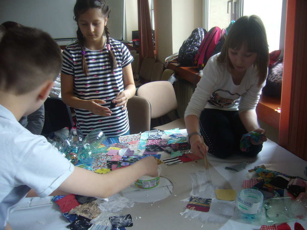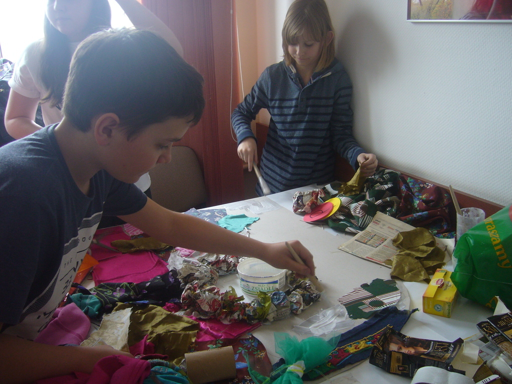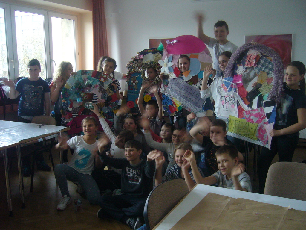Kolejne warsztaty w ramach projektu LOKOMOTYWĄ PO WIEDZĘ za nami. 27 kwietnia 23- osobowa grupa uczniów klasy IV b wybrała się do Łódzkiego Domu Kultury, by tam tworzyć elementy potrzebne do scenografii w przedstawieniu. Uczestnicy warsztatów stworzyli pojemniki na odpady papierowe, naturalne, plastikowe oraz pojemnik na ubrania. Elementy zostały wykonane z fragmentów tkanin, filcu, pasmanterii i dodatków krawieckich. Użyte materiały poddane zostały fizycznemu upcyklingowi. Warsztaty poprowadziła Pani Julita Pierzchała .