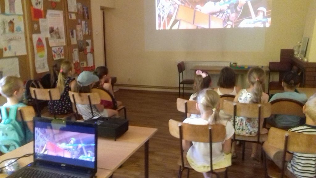 Środa upłynęła nam na projekcji filmowej, gdzie dzieci poczuły się niczym w kinie, był popcorn i dużo radości.