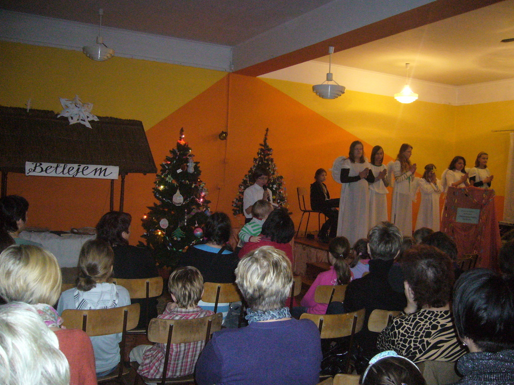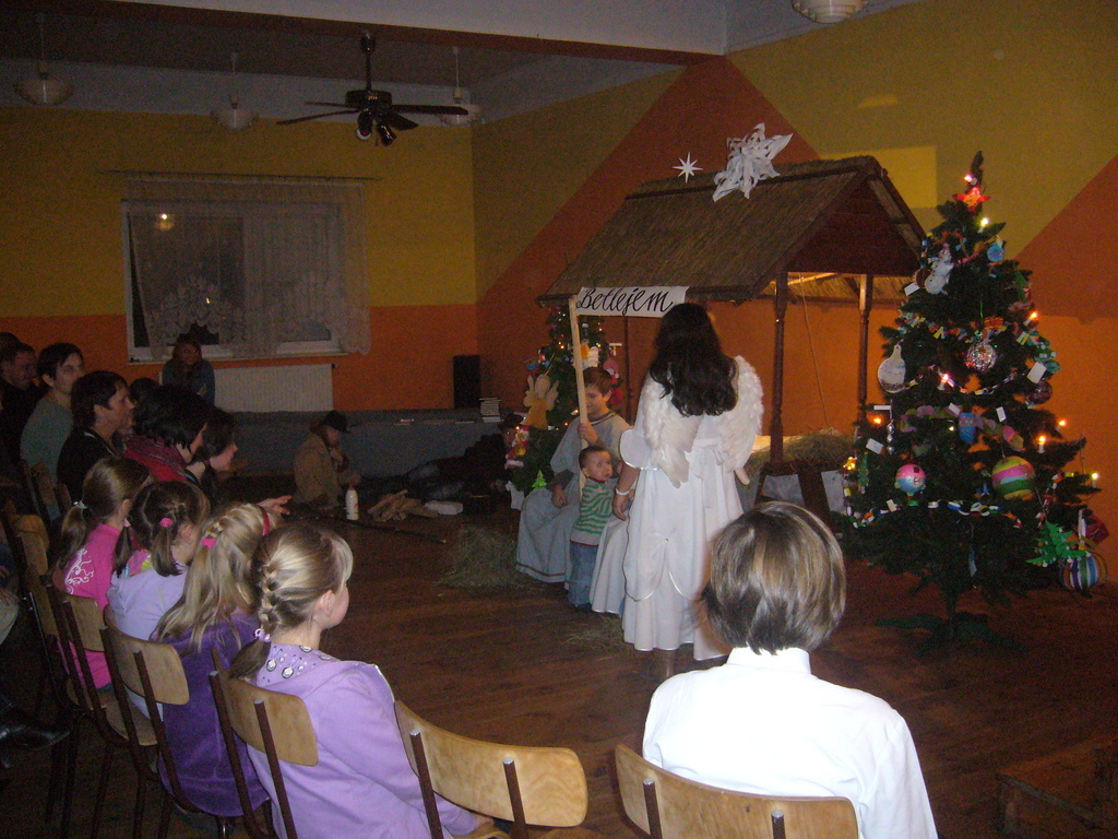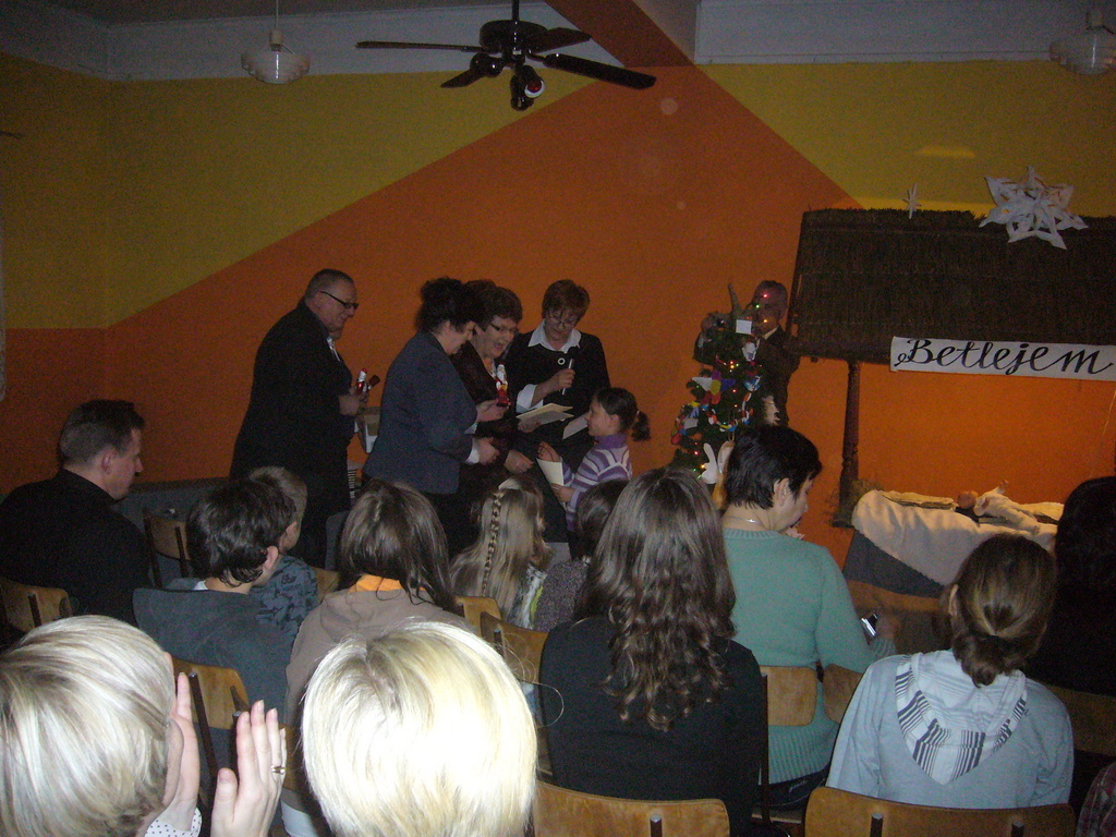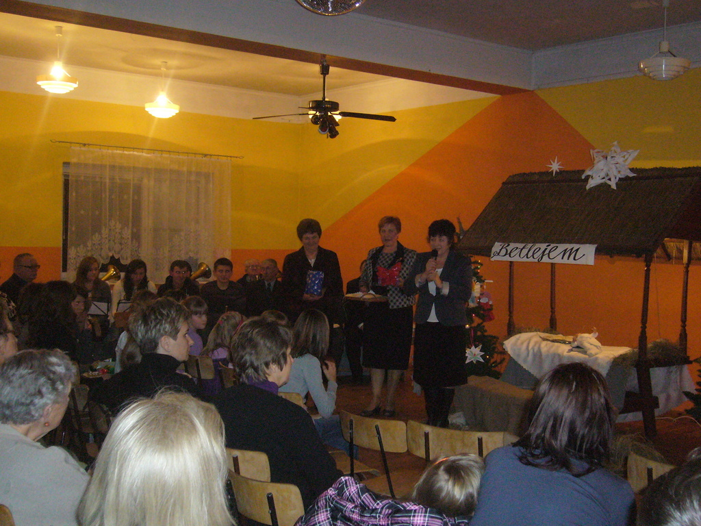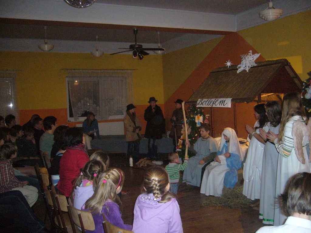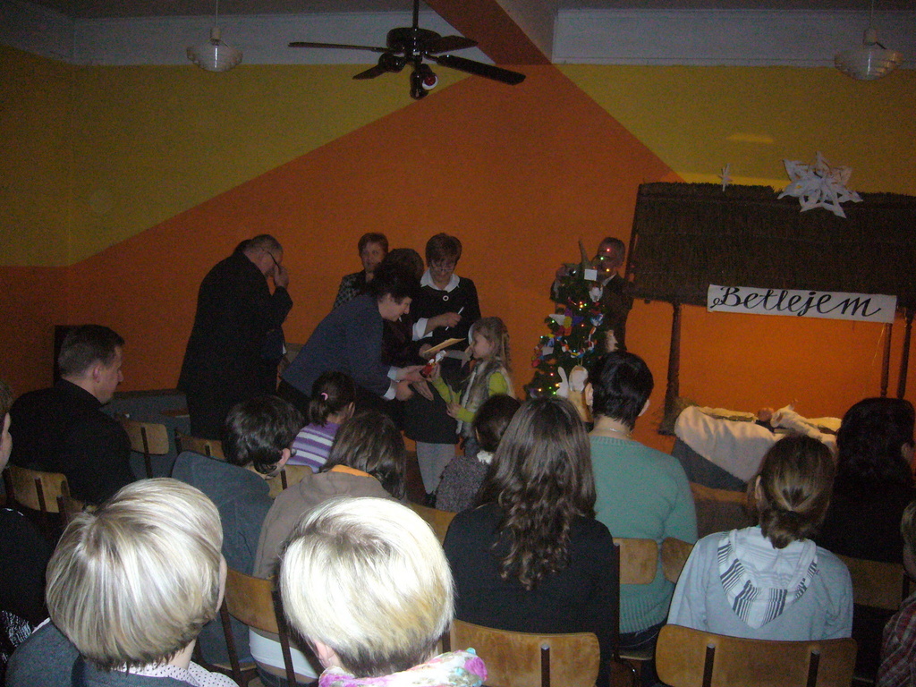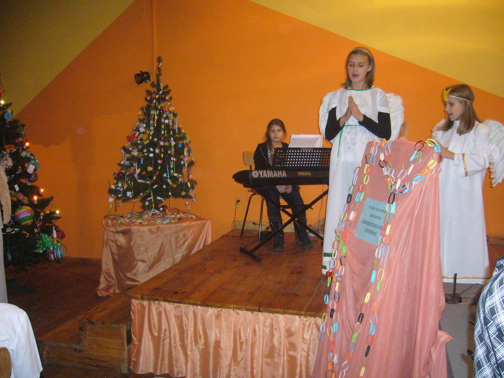 Kolejnym punktem spotkania były Jasełka przygotowane pod kierunkiem Pani Haliny Grabowicz w wykonaniu dzieci i młodzieży W główne role tj. Maryi i Józefa wcielili się Justyna Radzikowska i Radosław Radzikowski .