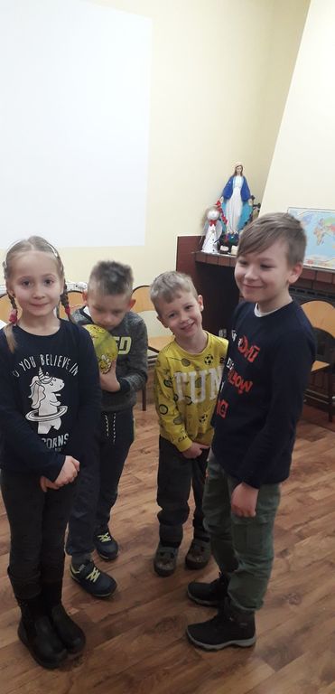 Poniedziałkowe spotkanie odbyło się pod hasłem: „BEZPIECZNE FERIE” - wspólnie ustaliliśmy zasady spędzania czasu wolnego. Dzieci pięknie zilustrowały swoje pomysły a wykonane prace zawisły na wystawie. Nie zabrakło również zabaw ruchowych oraz słodkiego poczęstunku.