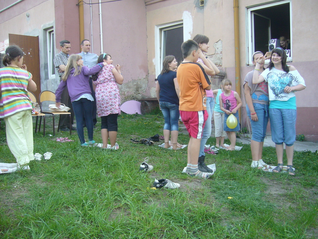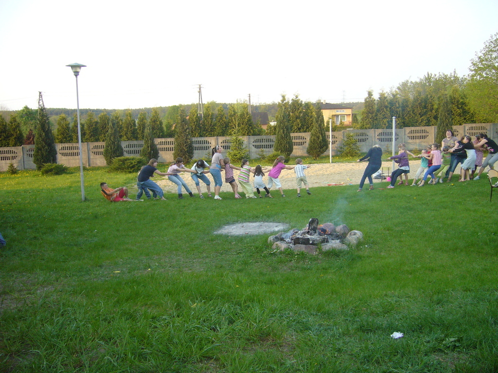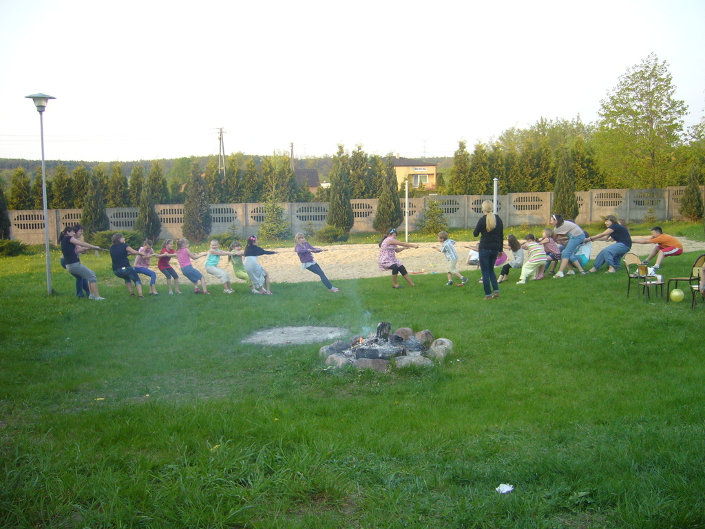 Po posileniu były gry i zabawy takie jak: przeciąganie liny, skoki w workach, sałatka owocowa, taniec na gazecie, taniec za balonami.