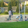 Chłopcy rozgrywali mecz piłki nożnej na terenie przy plebanii